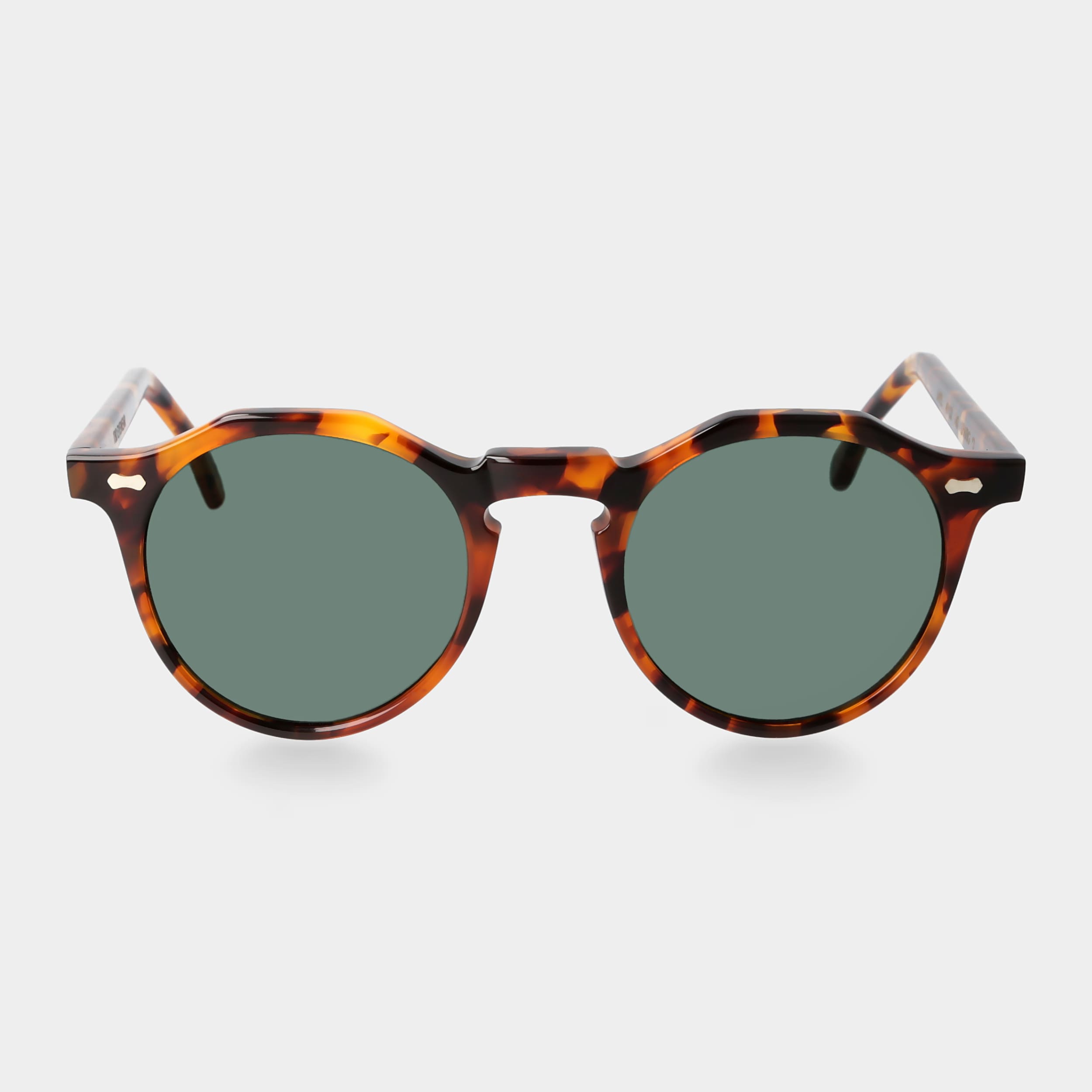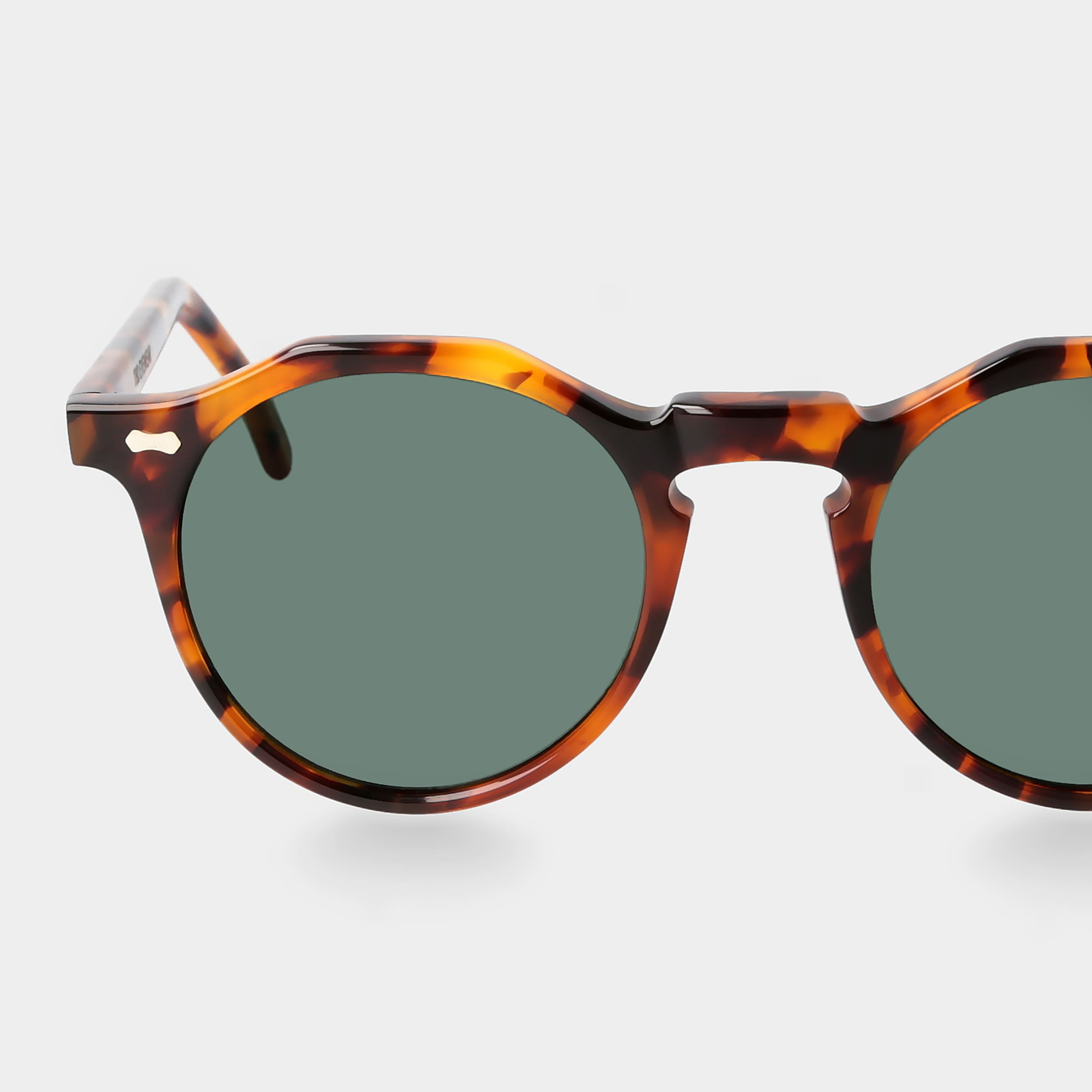 Classic lines with a contemporary cut for the iconic Lapel model. These sunglasses with an amber-colored frame made in Italy, have polarized green lenses that protect the eyesight. Perfect for both her and him.